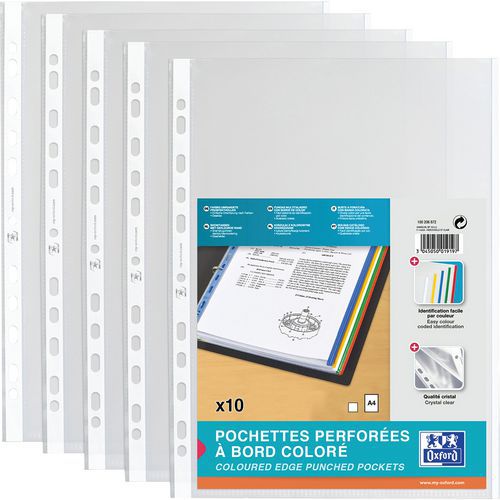 Pochette perforée à bord coloré Oxford - Sachet de 10