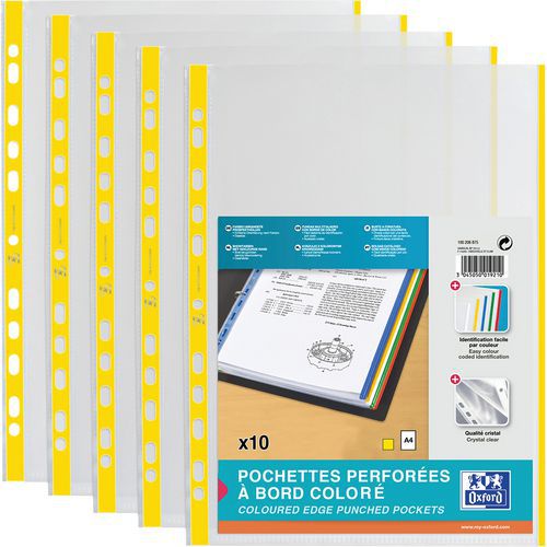 Pochette perforée à bord coloré Oxford, Nb de pochettes: 10, Coloris: Jaune, Pour format: 210 x 297 mm (A4) Pochette perforée à bord coloré Oxford, Nb de pochettes: 10, Coloris: Jaune, Pour format: 210 x 297 mm (A4)