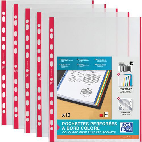 Pochette perforée à bord coloré Oxford, Nb de pochettes: 10, Coloris: Rouge, Pour format: 210 x 297 mm (A4) Pochette perforée à bord coloré Oxford, Nb de pochettes: 10, Coloris: Rouge, Pour format: 210 x 297 mm (A4)