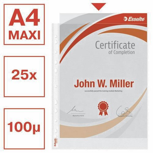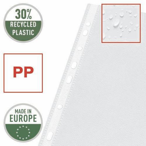 | Intitulé du produit | Pochette perforée A4+, Nb de pochettes: 25, Texture pochette: Grainée, Coloris: Transparent |