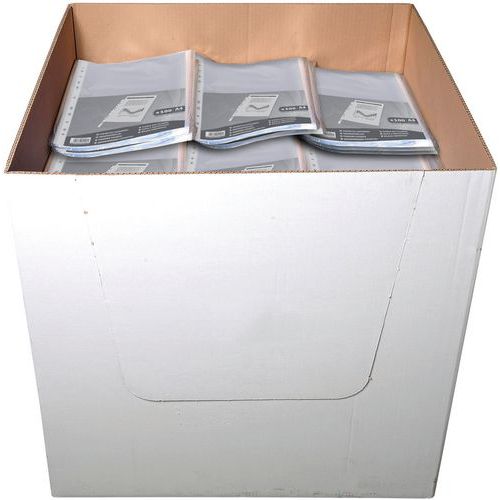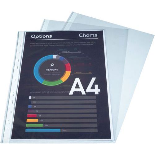 | Intitulé du produit | Pochette perforée A4 grainée 40 microns, Nb de pochettes: 100, Coloris: Transparent |