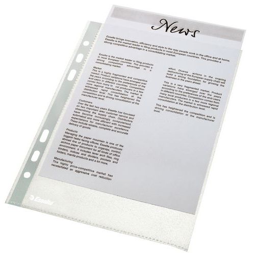 | Intitulé du produit | Pochette perforée A5 polypropylène grainé, 43µ, x100 Esselte, Coloris: Transparent |