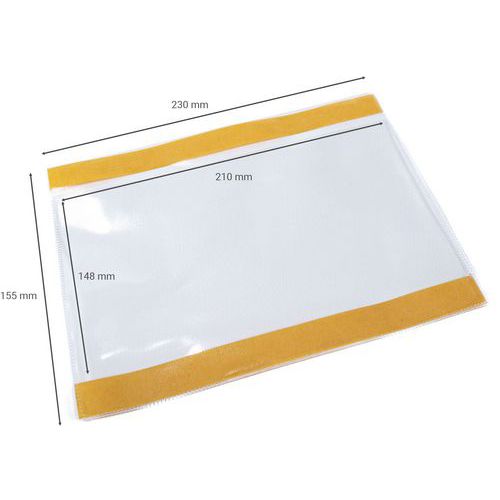 Pochette porte document autoadhésive transparent. Fixation facile sur n'importe quelle surface, même sur vos chargements. Convient aux formats papier les plus communs (A3-A7 et autres).