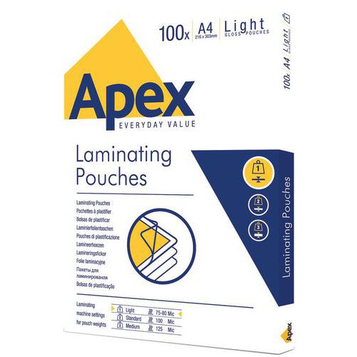 | Intitulé du produit | Pochettes de plastification, Épaisseur: 125 µm, Format: 210 x 297 mm (A4), Emballage recyclable: Oui - 100 % |