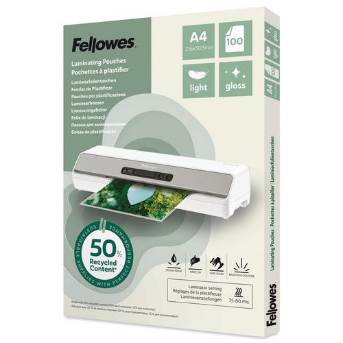 | Intitulé du produit | Pochettes de plastification Light Brillant, Épaisseur: 80 µm, Format: 210 x 297 mm (A4), Largeur: 21.6 cm |