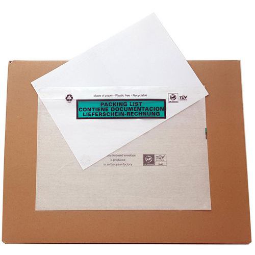Les pochettes Paper List , un indispensable pour protéger et identifier grâce au papier cristal transparent supérieur les documents (bon de livraison, facture, notice ....) qui accompagnent vos expéditions. Tout en papier, les pochettes Paperlist sont des accessoires d'emballage écoresponsables, et contribuent de fait à la réduction de l'usage de plastique et à la réduction de notre empreinte carbone. Ces pochettes de qualité sont produites en France, et garantissent gräce à leur pouvoir adhésif sur tous supports un acheminement sans risque des documents d'expédition. Disponibles en plusieurs versions, avec ou sans impression, et dans différentes langues, et dans différents conditionnements.