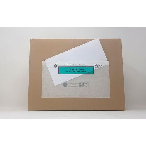Les pochettes Paper List , un indispensable pour protéger et identifier grâce au papier cristal transparent supérieur les documents (bon de livraison, facture, notice ....) qui accompagnent vos expéditions. Tout en papier, les pochettes Paperlist sont des accessoires d'emballage écoresponsables, et contribuent de fait à la réduction de l'usage de plastique et à la réduction de notre empreinte carbone. Ces pochettes de qualité sont produites en France, et garantissent gräce à leur pouvoir adhésif sur tous supports un acheminement sans risque des documents d'expédition. Disponibles en plusieurs versions, avec ou sans impression, et dans différentes langues, et dans différents conditionnements.