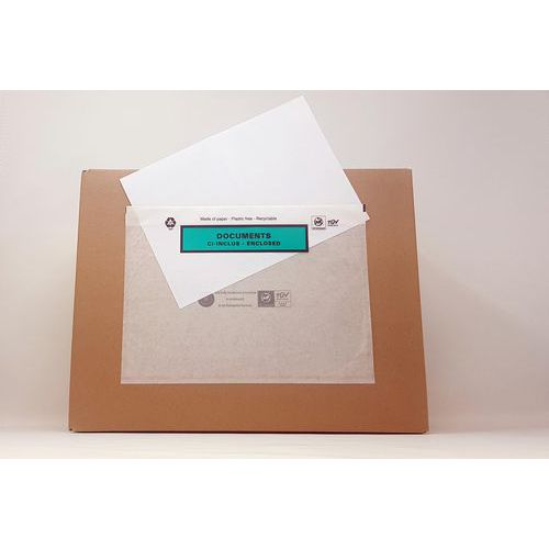 Les pochettes Paper List , un indispensable pour protéger et identifier grâce au papier cristal transparent supérieur les documents (bon de livraison, facture, notice ....) qui accompagnent vos expéditions. Tout en papier, les pochettes Paperlist sont des accessoires d'emballage écoresponsables, et contribuent de fait à la réduction de l'usage de plastique et à la réduction de notre empreinte carbone. Ces pochettes de qualité sont produites en France, et garantissent gräce à leur pouvoir adhésif sur tous supports un acheminement sans risque des documents d'expédition. Disponibles en plusieurs versions, avec ou sans impression, et dans différentes langues, et dans différents conditionnements.