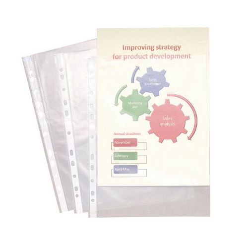 | Intitulé du produit | Pochettes perforées en PP grainé lot de 100, Coloris: Transparent, Matériau: Polypropylène |