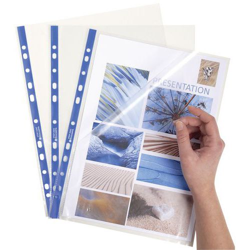 | Intitulé du produit | Pochettes perforées Stop doc ouverture en coin, Avec fenêtre: non, Matériau: Polypropylène |