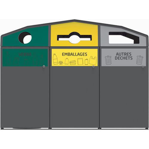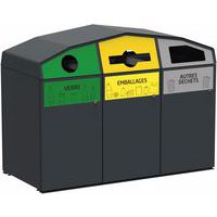Point de tri avec 3 bacs roulants Trirok, Capacité: 340 L, Ouverture: Frontale, Matériau: Métal