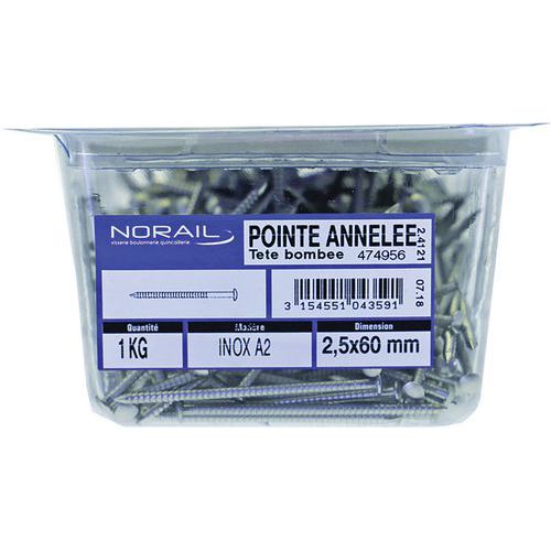 Pointe annélée tête plate bombée inox A2 - Norail