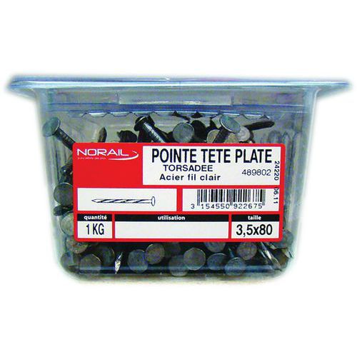 Pointe tête plate torsadée, Tête Ø: 3.5 cm, Longueur: 80 mm, Matériau: Acier, Poids: 1 kg
