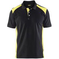 Polo piqué noir/jaune fluorescent, Type de vêtement: T-shirt et polo de travail, Matière: Coton et polyester