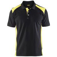 Polo piqué noir/jaune fluorescent, Type de vêtement: T-shirt et polo de travail, Matière: Coton et polyester