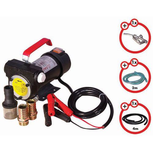 | Intitulé du produit | Pompe à gasoil 12V avec pistolet manuel, Débit maxi: 40 L/h, Tension: 12 V, Puissance: 150 W, Poids: 10 kg |