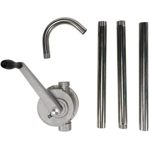 | Intitulé du produit | Pompe manuelle rotative inox, Corps de pompe matériau: Inox, Débit par mouvement: 0.24 L |