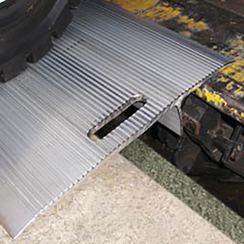 Pont de chargement PL, forme extra plate, pour le passage de matériels ayant de faible garde au sol. Adapté aux passages de transpalettes manuels et électriques, gerbeurs ayant de très faibles gardes au sol. Ailette centrale qui bloque le pont et évite tout risque de ripage. Blocage automatique entre le quai et le camion.