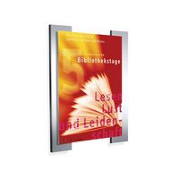 Ce porte-affiche est doté d’un cadre design, constitué de deux panneaux en aluminium.  Le compartiment qui accueille les affiches peut être facilement ouvert et permet dès lors un changement rapide et aisé du contenu.