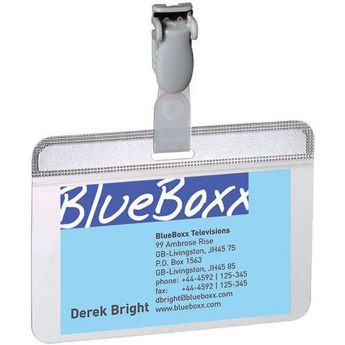 | Intitulé du produit | Porte-badge autoplastifiable, Coloris: Gris, Type de fixation: Clip, Longueur: 90 mm, Hauteur: 54 mm |