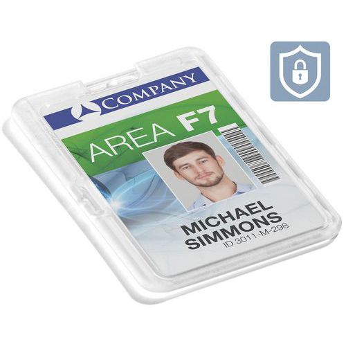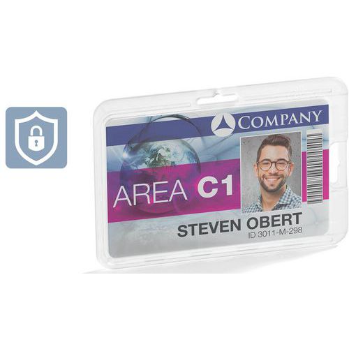 | Intitulé du produit | Porte-badge permanent pour 1 carte de sécurité, Hauteur: 54 mm, Largeur: 87 mm, Matériau: Polycarbonate |