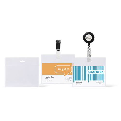 | Intitulé du produit | Porte-badge transparent, Coloris: Transparent, Longueur: 105 mm, Largeur: 92 mm, Nb de pièces: 100 |