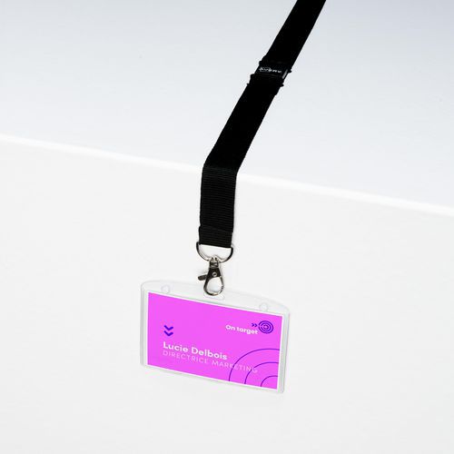 Porte-badges avec tours de cou, Coloris: Noir, Orientation: Horizontale, Nb de trous de perforation: 3