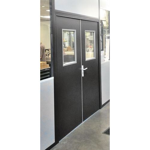 Porte battante pour cloisons d'atelier tôle d'acier ou mélaminé - Panneau semi-vitré - Hauteur 2.75 m
