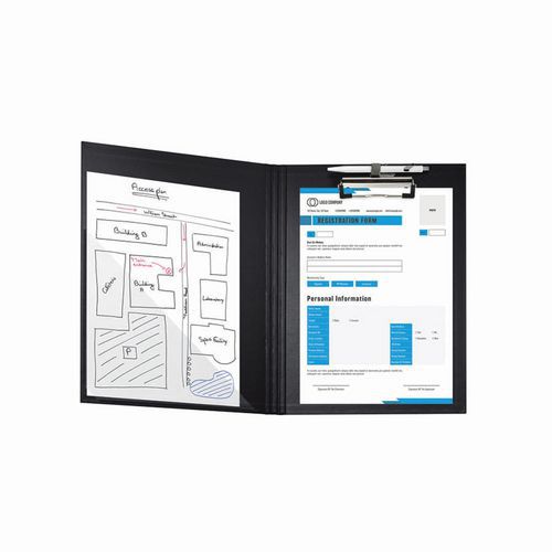 | Intitulé du produit | Porte-bloc à rabat papier enduit, Matériau: Carton, Coloris: Noir, Hauteur: 190 mm |