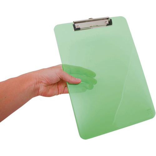 Porte-bloc A4 neon PS transparent portrait avec pince à arceau, Coloris: Vert