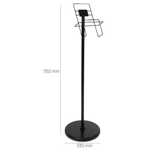 | Intitulé du produit | Porte brochures A4 sur pied en acier Noir, Nb de tablettes: 1, Coloris: Noir, Largeur hors tout: 330 mm |