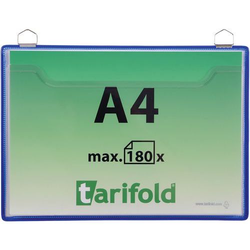 Porte-brochures Tarifold pratique et fiable, format A4 bleu.