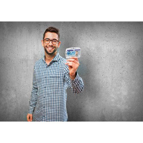 Porte-badge se combinant avec un enrouleur, lacet, clip ou chaînette.