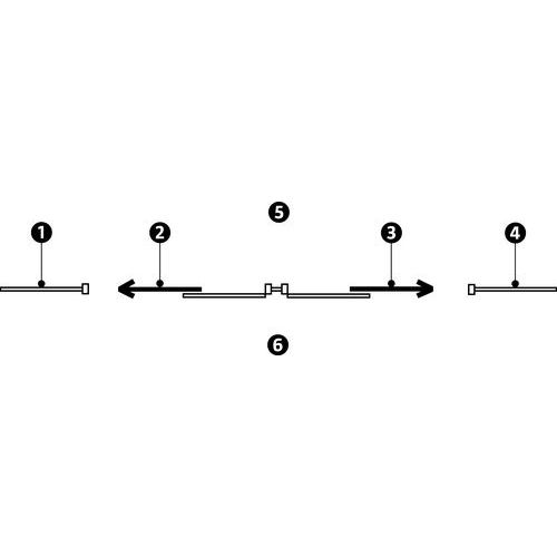 1 - panneau rigide 2 - porte coulissante à gauche 3 - porte coulissante à droite 4 - panneau rigide 5 - extérieur 6 - intérieur