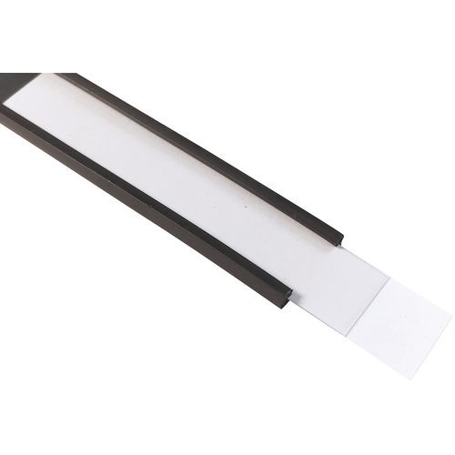 Porte-étiquette en plastique blanc. Modification rapide et aisée en remplaçant ou en retournant l’étiquette. Support magnétique facile à déplacer. Peut-être utilisé dans les chambres froides. Extrusion magnétique flexible comprenant de la ferrite de strontium dans un liant de caoutchouc synthétique et plusieurs pôles magnétiques sur une face.