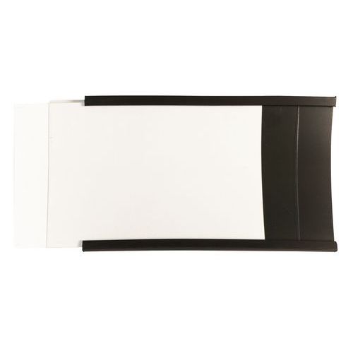 Porte-étiquette en plastique blanc. Modification rapide et aisée en remplaçant ou en retournant l’étiquette. Support magnétique facile à déplacer. Peut-être utilisé dans les chambres froides. Extrusion magnétique flexible comprenant de la ferrite de strontium dans un liant de caoutchouc synthétique et plusieurs pôles magnétiques sur une face.