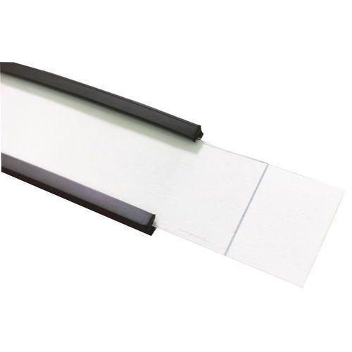 Porte-étiquette en plastique blanc. Modification rapide et aisée en remplaçant ou en retournant l’étiquette. Support magnétique facile à déplacer. Peut-être utilisé dans les chambres froides. Extrusion magnétique flexible comprenant de la ferrite de strontium dans un liant de caoutchouc synthétique et plusieurs pôles magnétiques sur une face.