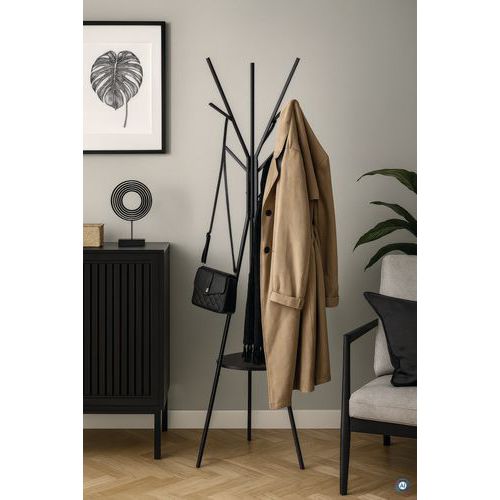 - Porte manteau design en acier et bois au style moderne et peu encombrant.