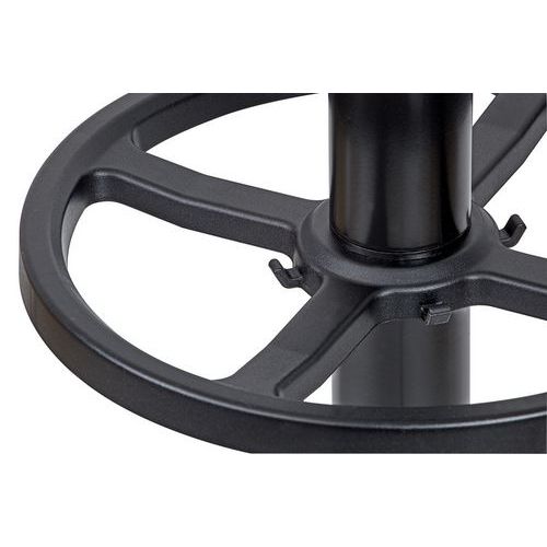 Grande stabilité, lourd socle en béton avec revêtement plastique et sabots de protection du sol en feutre.
