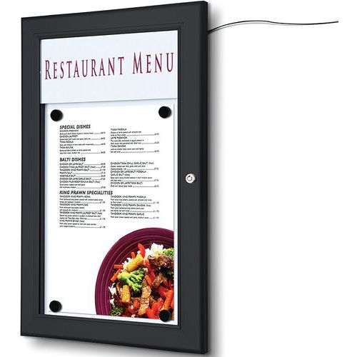 | Intitulé du produit | Porte menu mural extérieur LED, Nb de cases/colonne: 1, Coloris: Noir, Structure matériau: Aluminium |