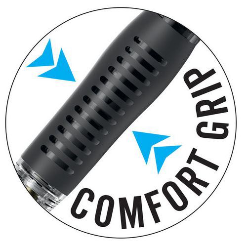 - Doté d'une mine imprégnée de nano-diamants résistante et un mécanisme d’absorption des chocs qui évite les bris de mines.