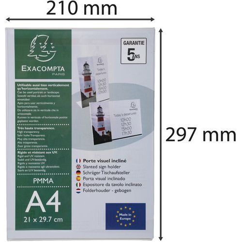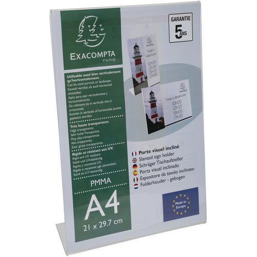 Porte-visuel droit vertical, Matériau: Acrylique, Coloris: Transparent, Hauteur hors tout: 305 mm