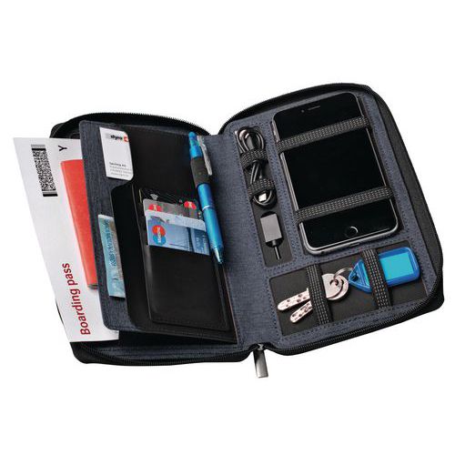Portefeuille de voyage avec batterie externe, Coloris: Bleu, Largeur: 14 cm, Hauteur: 2.8 cm