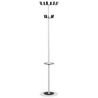 Tête : 6, 8, 10 ou 12 patères en acier, finition époxy Porteparapluies : en acier, finition époxy Coupelle de récupération d’eau : en acier, finition époxy Fût : en acier, diamètre 30 mm, finition époxyblanc Base : en acier, diamètre 35 cm, finition époxy blanc