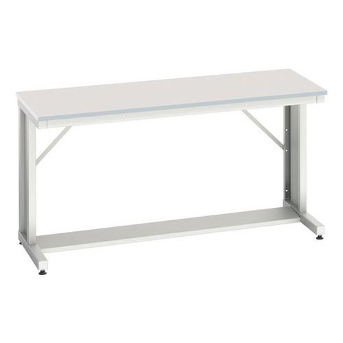 Pour l’assemblage et l’environnement bureau. Robuste ossature en acier Piétement en « L » avec vérins Raidisseurs pour une parfaire stabilité 2 qualités de plateaux au choix. Epaisseur 20 mm Peut recevoir des caissons à suspendre Compatible avec le cadre portique de la page 203 Livré démonté, facile à assembler Fabriqué au RU