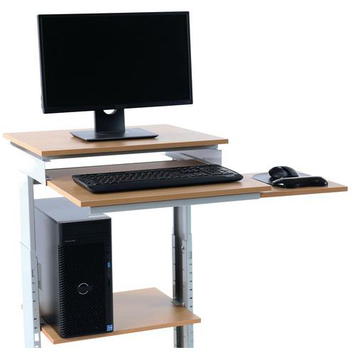 Le plateau (50-60 cm) destiné à accueillir le clavier et la souris est coulissant et réglable en hauteur, ce qui vous garantit une bonne position de travail.