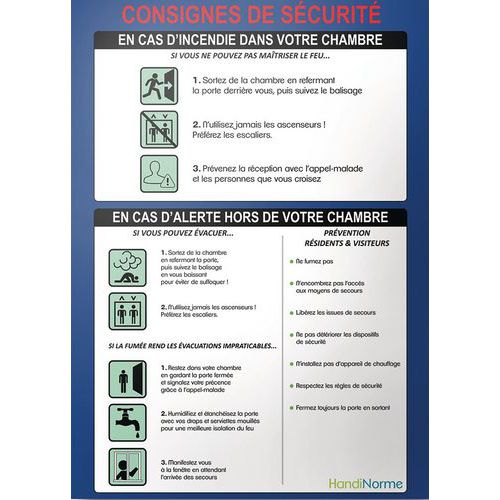 Poster A3 consignes incendie pour Hôpital et maison de retraite