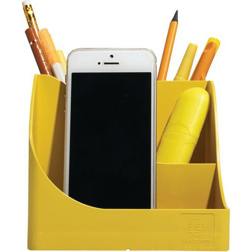 Il offre 4 compartiments hauts pour les grands ustensiles : ciseaux, stylos et 1 compartiment bas pour les petits objets tels que les trombones, les punaises, clé USB ou même son téléphone portable.
