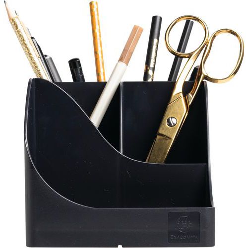 Il offre 4 compartiments hauts pour les grands ustensiles : ciseaux, stylos et 1 compartiment bas pour les petits objets tels que les trombones, les punaises, clé USB ou même son téléphone portable.