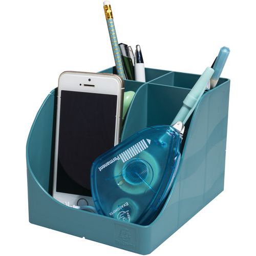 Il offre 4 compartiments hauts pour les grands ustensiles : ciseaux, stylos et 1 compartiment bas pour les petits objets tels que les trombones, les punaises, clé USB ou même son téléphone portable.